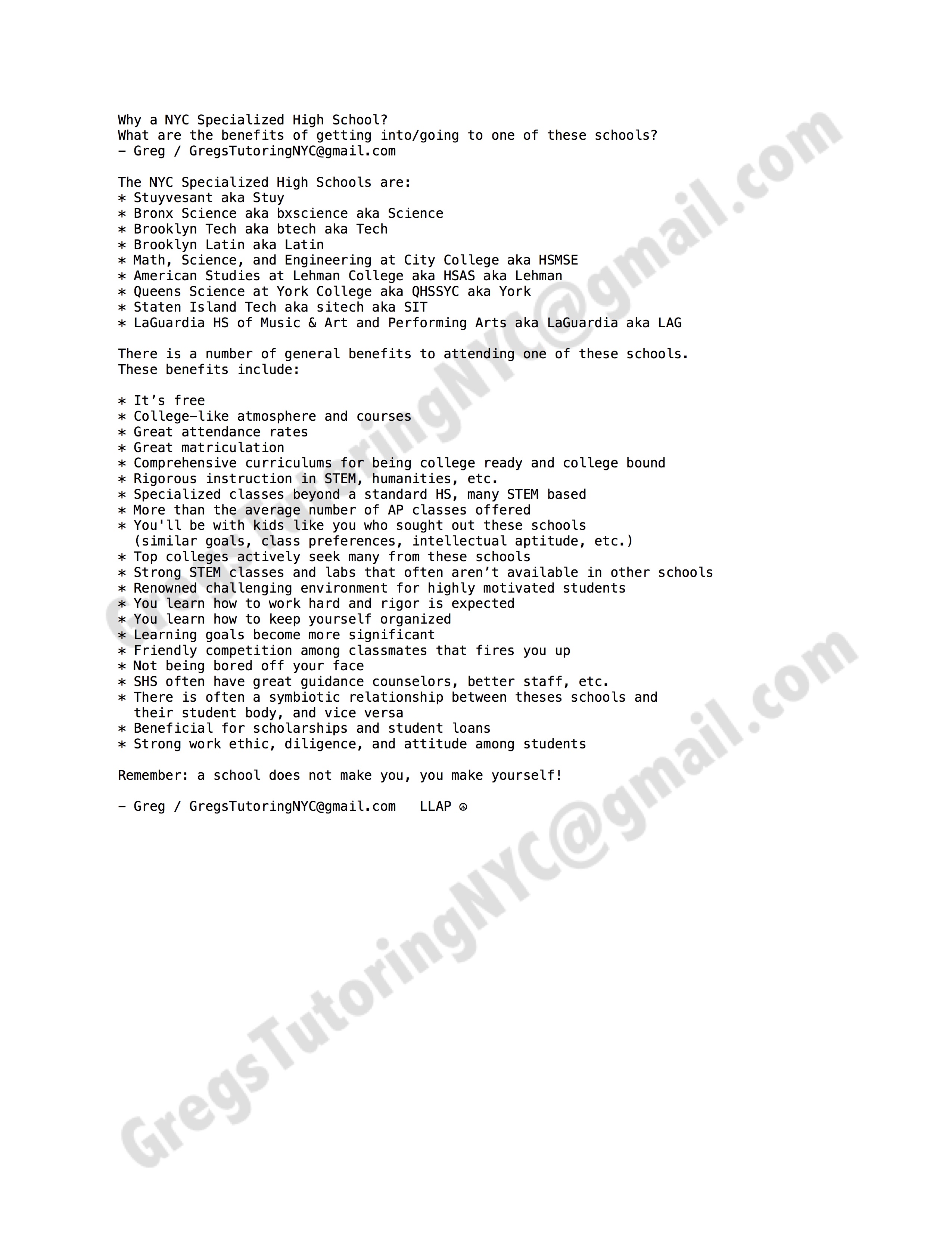 Greg's Tutoring NYC has created a number of YouTube livestreams and other info pertaining to the SHSAT, NYC's Specialized HS Admissions Test.