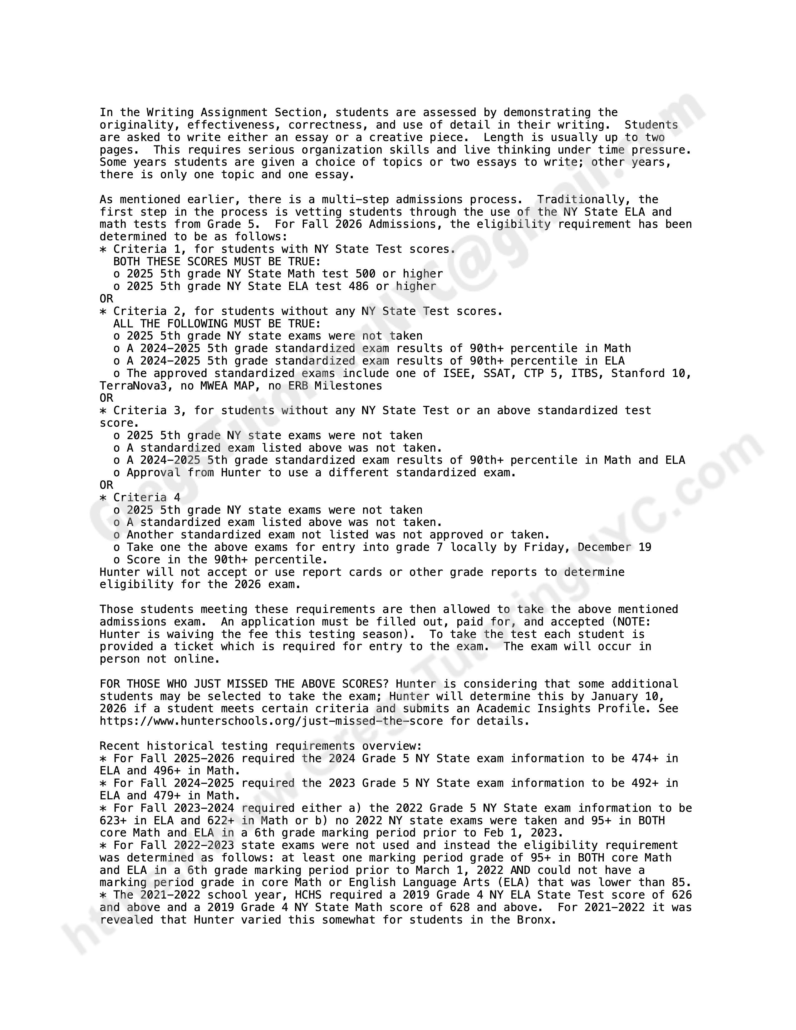 Practice is one essential key to success, and so is getting accurate feedback. See where you stand by taking a full length mock Hunter College High School practice test with Greg's Tutoring NYC!